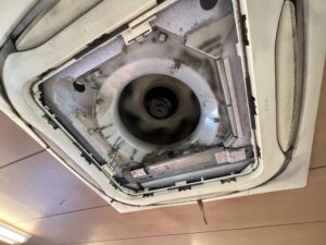 飲食店様のエアコンは厨房に近いものは高確率でフィルターが油まみれになっています。